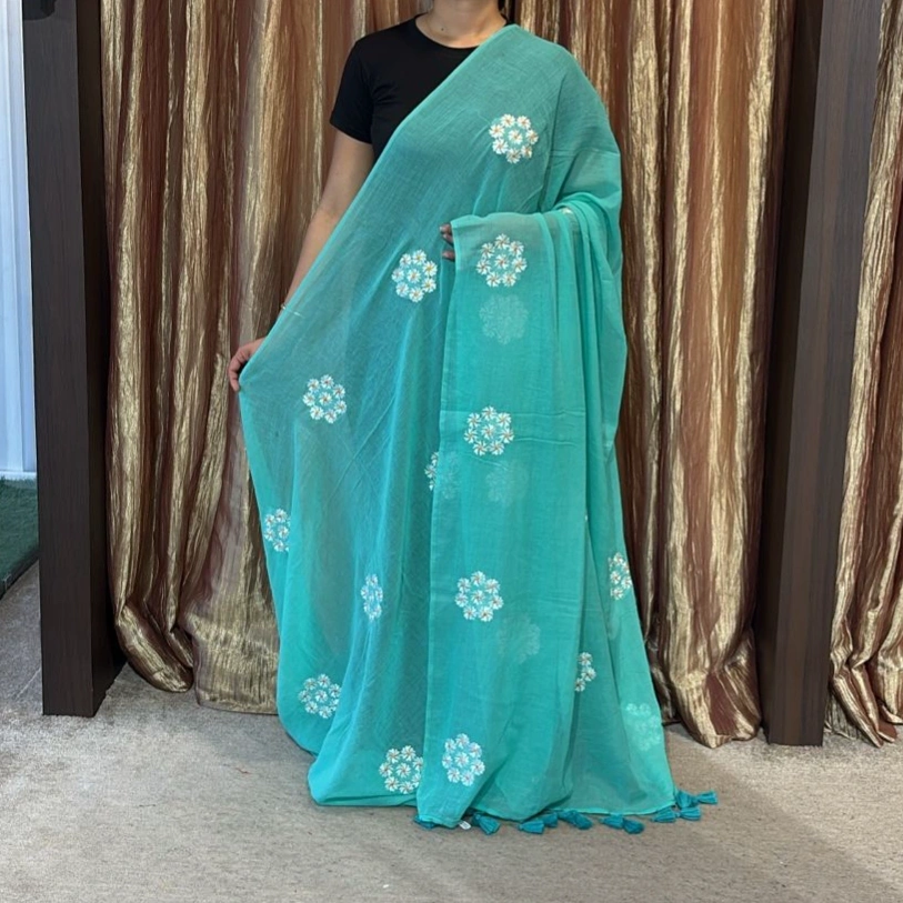 FLOWER EMBROIDERY MUL SAREE - NN186934