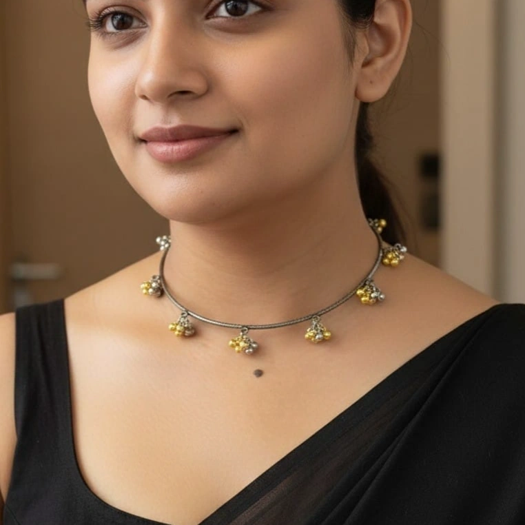 OXIDISED GHUNGROO CHOKER - NN25774